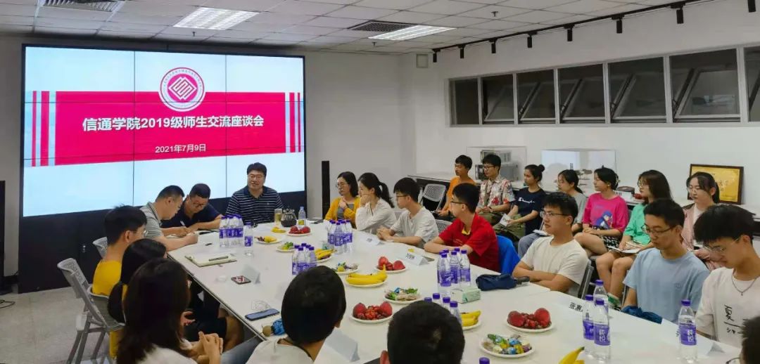 为更好地推动“我为师生办实事”落实落地,全方位、多视角了解学生所需所想,开创人才培养新局面,信息与通信工程学院于7月9日上午在海山楼A537举办2019级师生交流座谈会。学院领导、老师与2019级信通学院本科生代表参与座谈。
